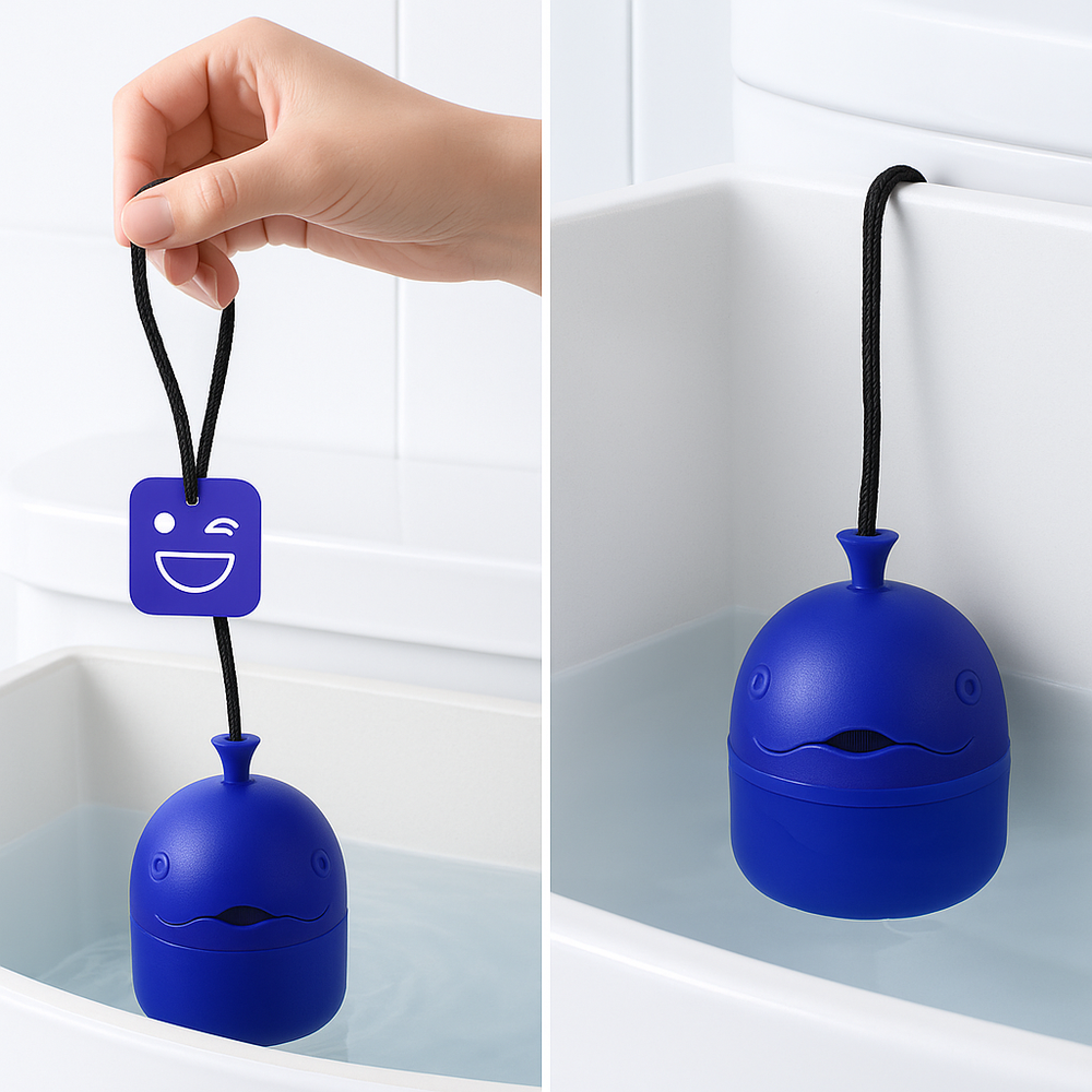 Yes! The whale works with all standard toilet tanks. Simply hang it inside using the included lanyard, and the automatic sinking design positions itself perfectly. It's compatible with both traditional and low-flow toilets, and won't interfere with any internal mechanisms